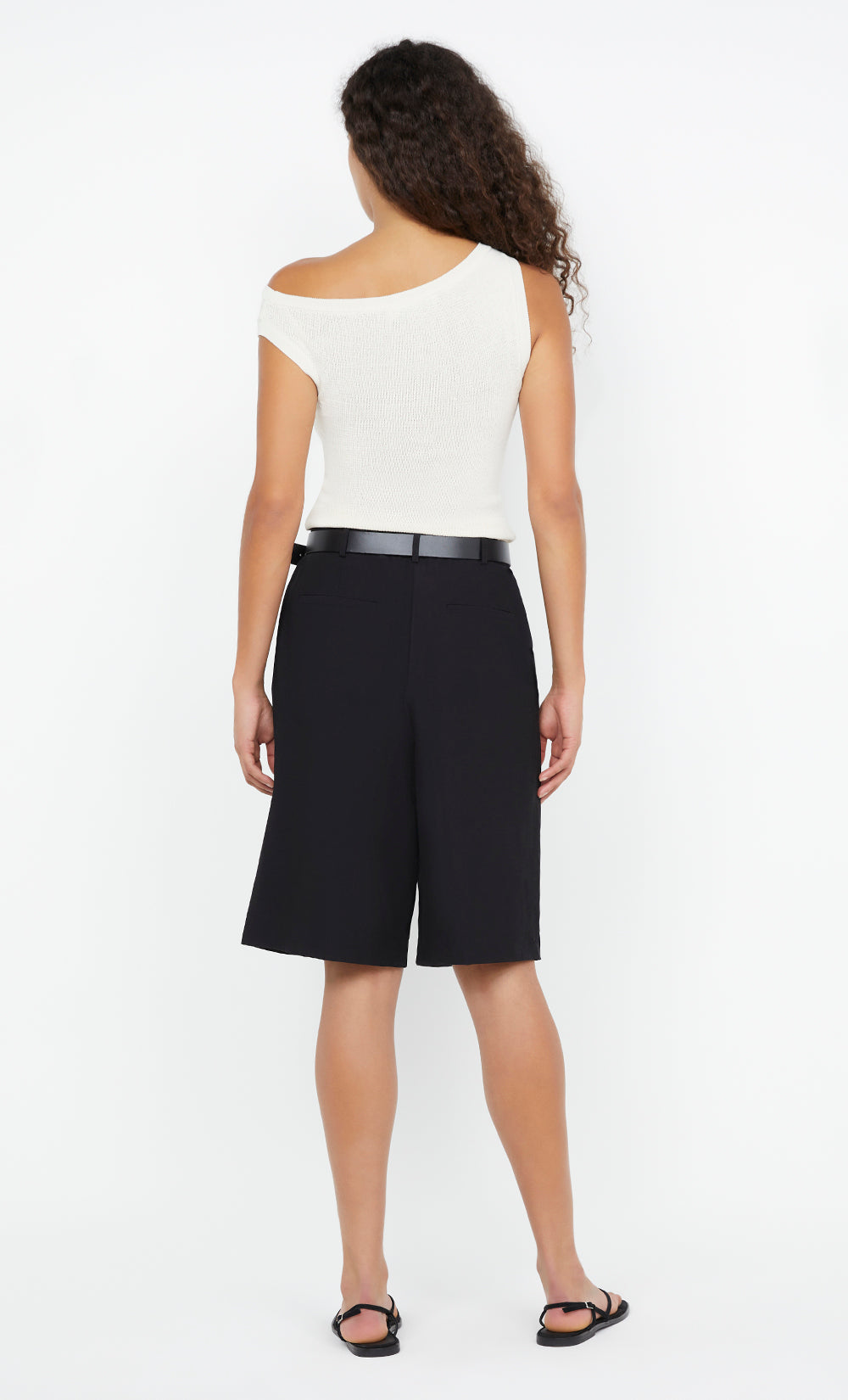 The BEC + BRIDGE Desiree Bermuda Short are an easy-to-wear, tailored style designed to sit on the mid waist. The relaxed, knee length short features belt loops, front tucks, front pockets and back welt pockets.