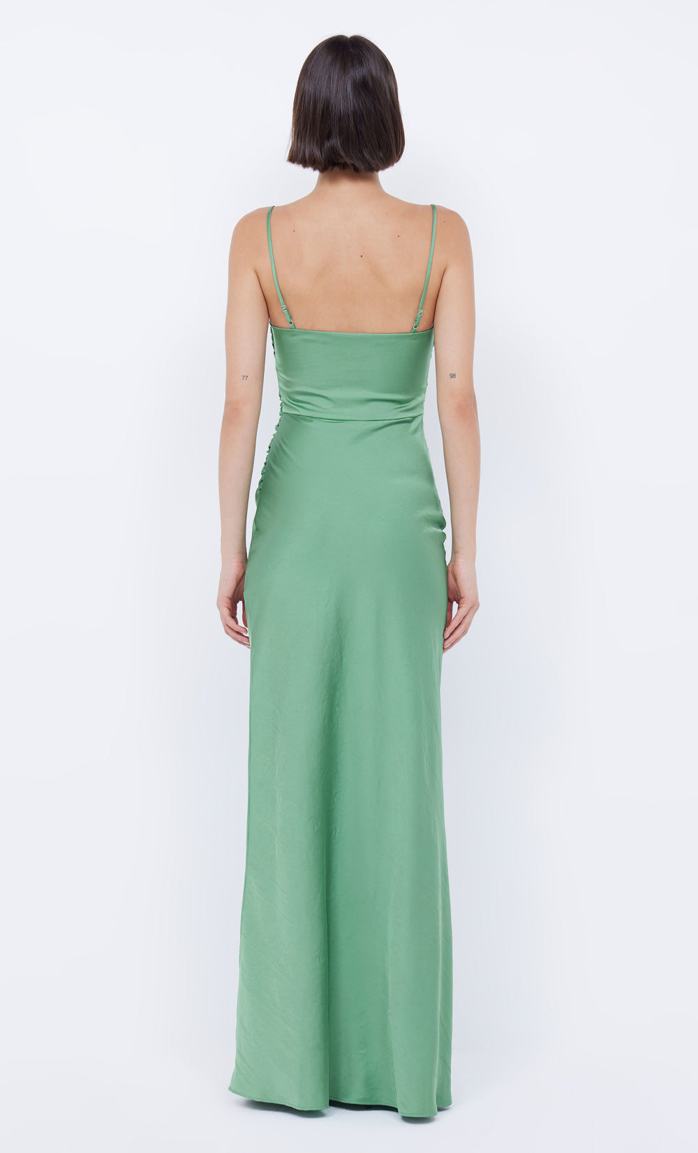 The BEC + BRIDGE Emilia Scoop Neck Dress is a feminine and effortless style featuring a gathered scoop neckline with underbust seam, mid thigh split at side seam and gathers at the mid section to create a flattering silhouette.