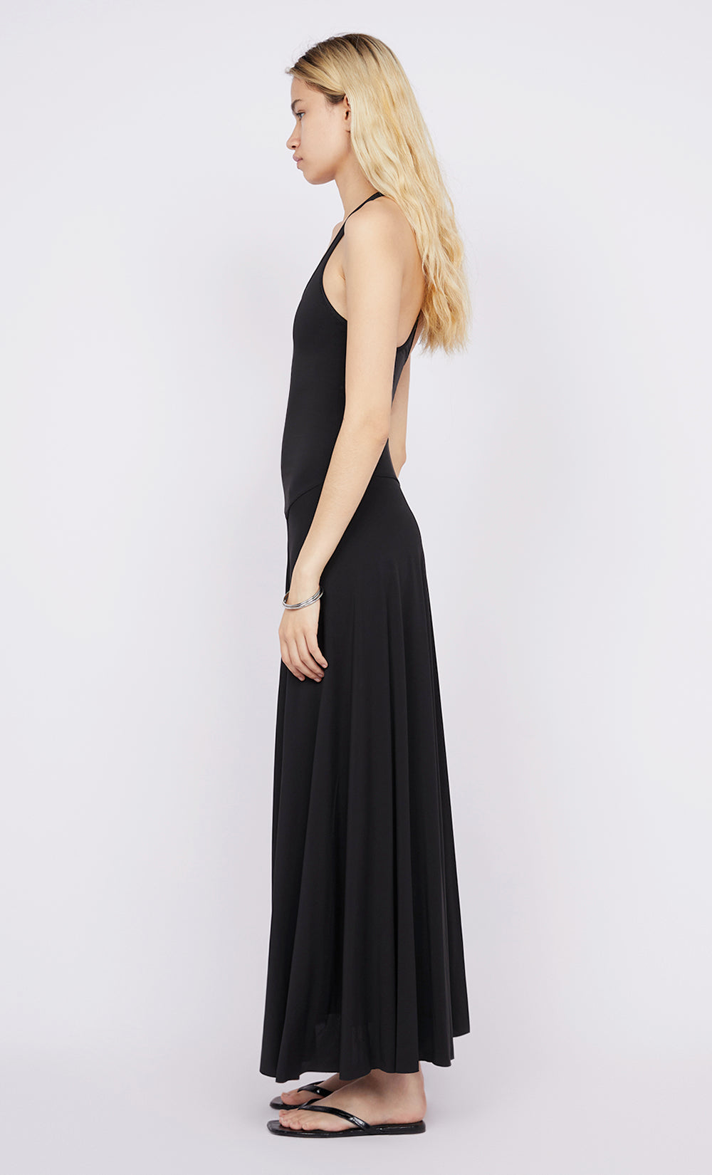 The BEC + BRIDGE Gigi Singlet Dress in Black is the modern wardrobe hero you've been looking for. This easy-to-wear maxi dress features a scoop neckline, with a racerback, before falling into a flowing draping maxi skirt with an asymmetrical hemline.