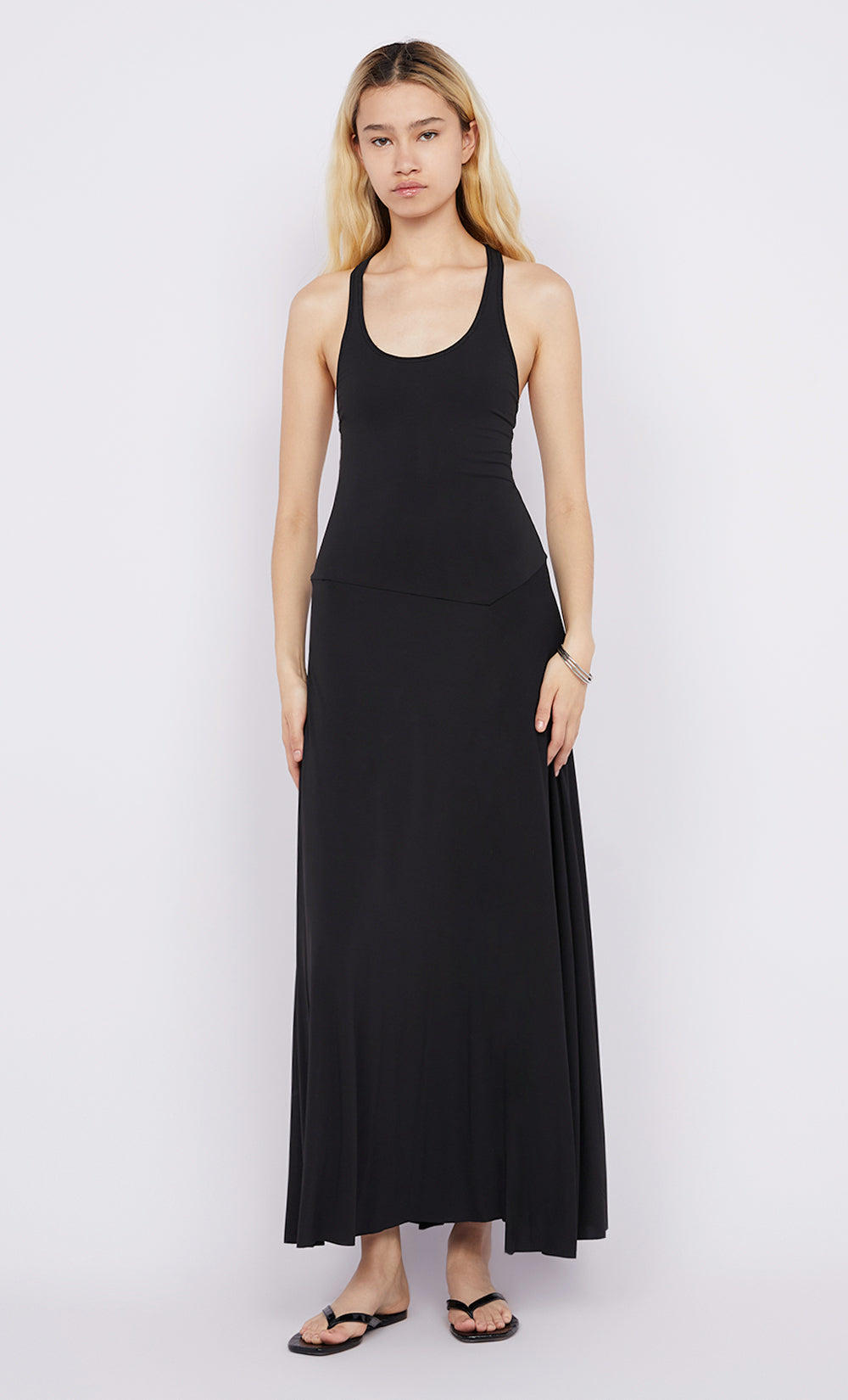 - Maxi Dress with a scoop neckline and racerback detail