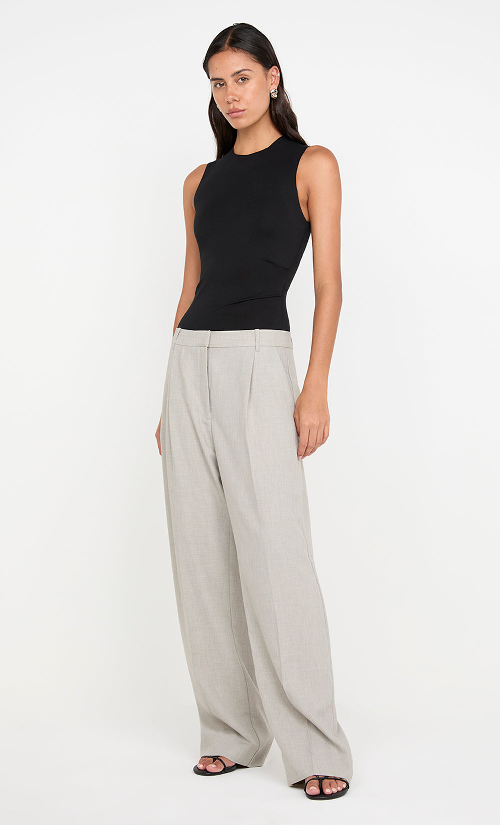 The BEC + BRIDGE Jac Boatneck Bodysuit in Black is a sleek and versatile staple crafted from soft, stretchy modal fabric. Designed with a flattering round neckline and subtle tucks at the waist, this bodysuit hugs the body for a smooth, fitted silhouette. Featuring an invisible zip at the center back and snap button closure at the crotch, it ensures a seamless and comfortable fit. Perfect for pairing with BEC + BRIDGE Renzo Pant for a polished look.