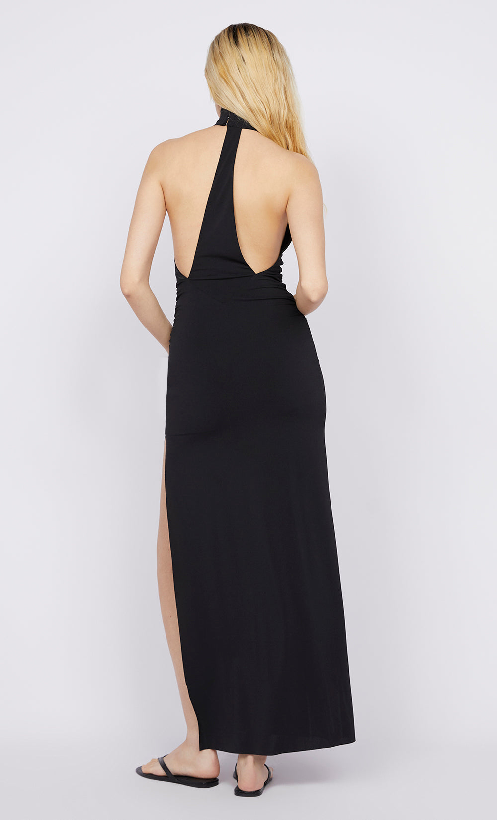The BEC + BRIDGE Larsen Racer Dress in Black embodies elegance in a modern silhouette. Featuring a glamorous high halter neckline that falls into a dramatic open back with racer-style cut-out details, it's perfect for turning heads at your next formal event.