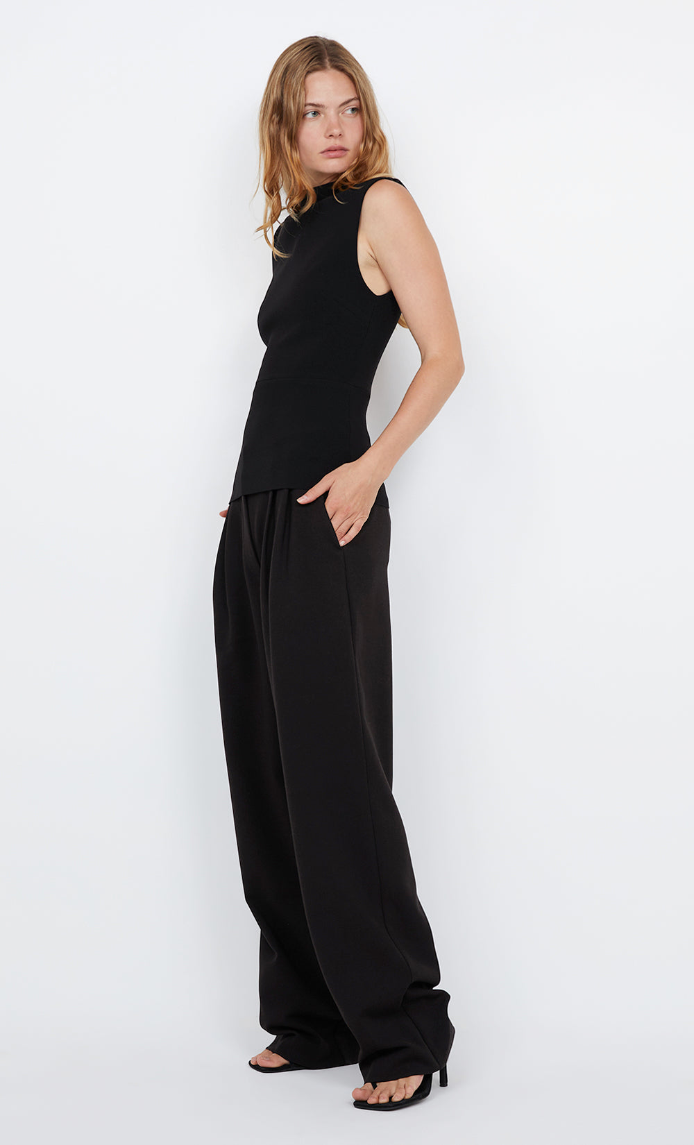 The Leora Peplum Top in Black is a sleek, longline design crafted from our signature bonded crepe fabric. Featuring a boat neckline, bust darts, and a waist seam, this top is designed to fit closely to the body, becoming slightly A-line towards the hem for a flattering silhouette. Accessed via an invisible zip at the centre back, it’s finished with a raw hem for a modern edge. Bra-friendly and versatile, this top is perfect for an elevated everyday look.