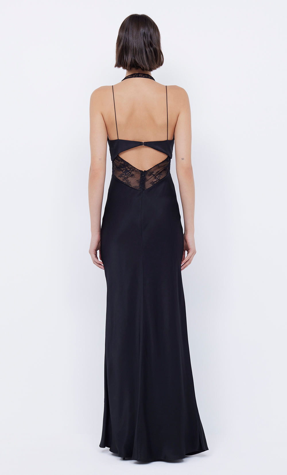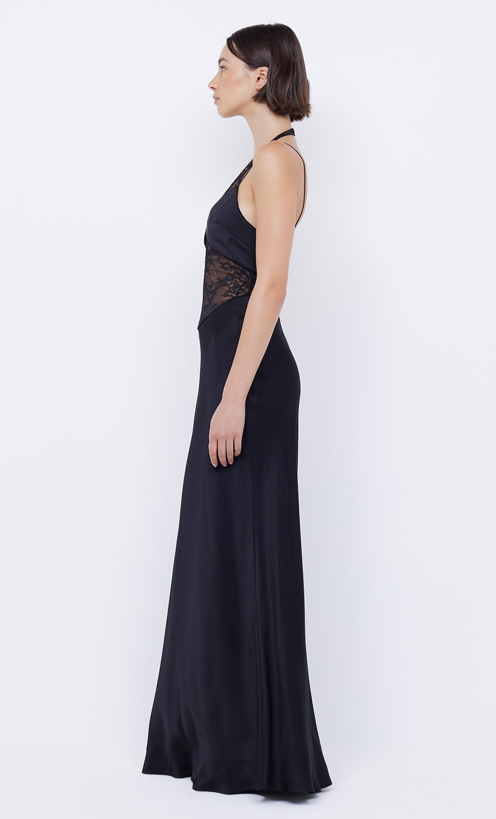 Make a statement in the BEC + BRIDGE Liv Halter Maxi Dress. An elevated style that features a deep v halter neck stretch lace underlay that holds the figure under a bralette overlay and accompanying skirt.