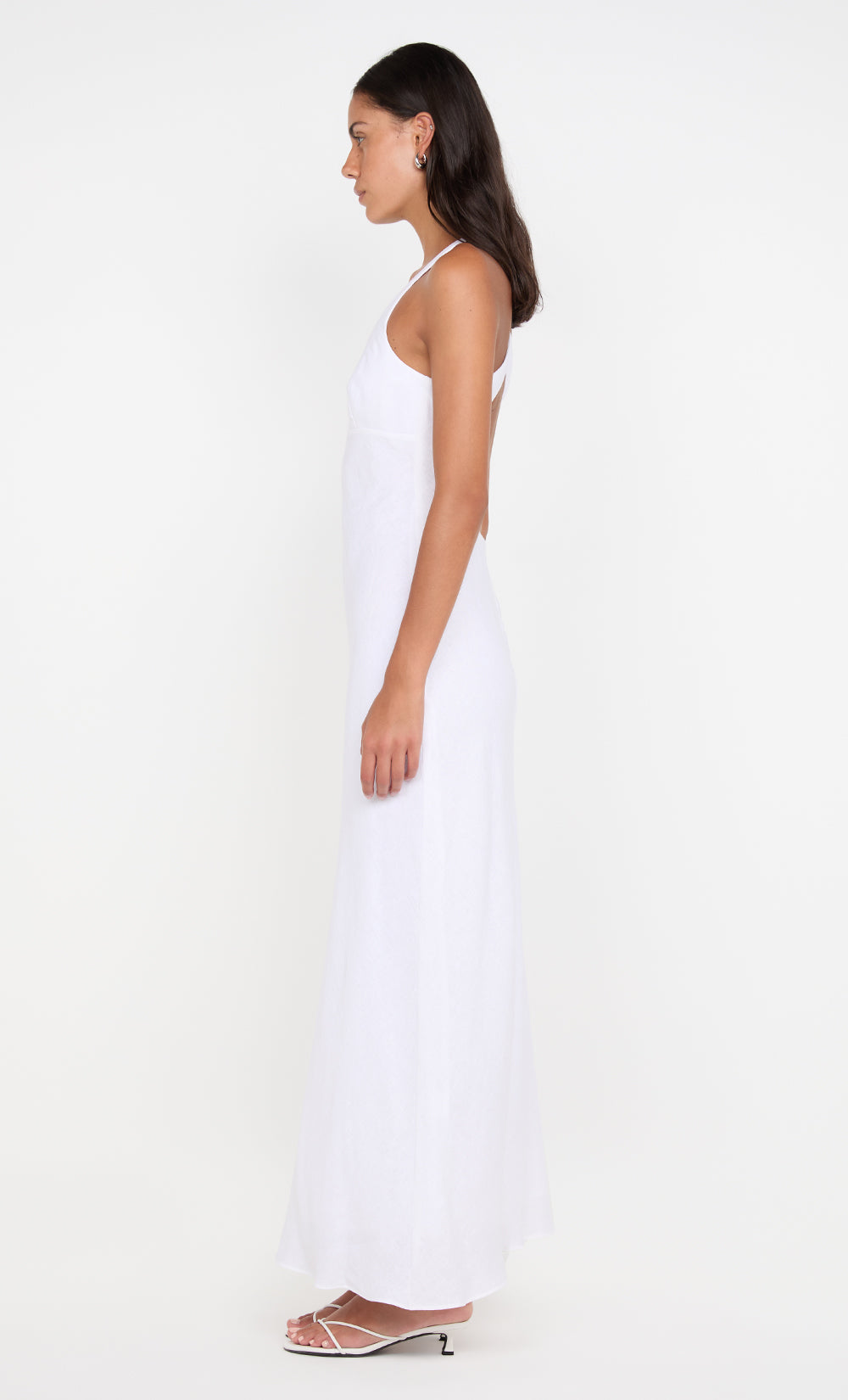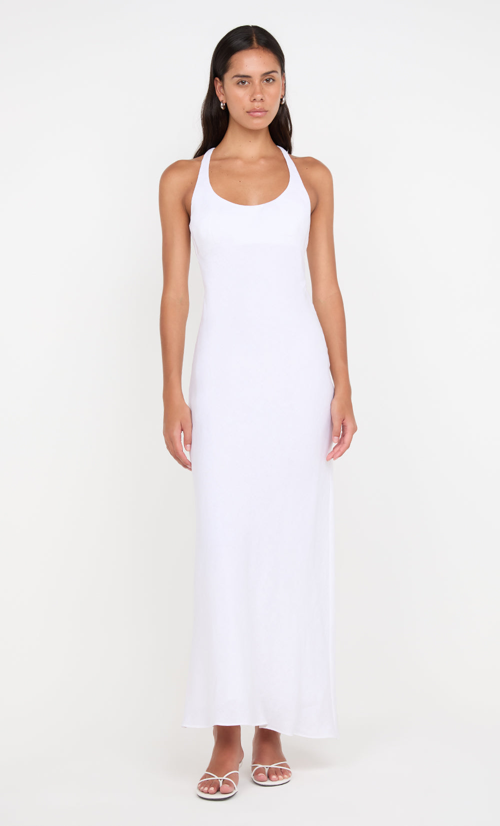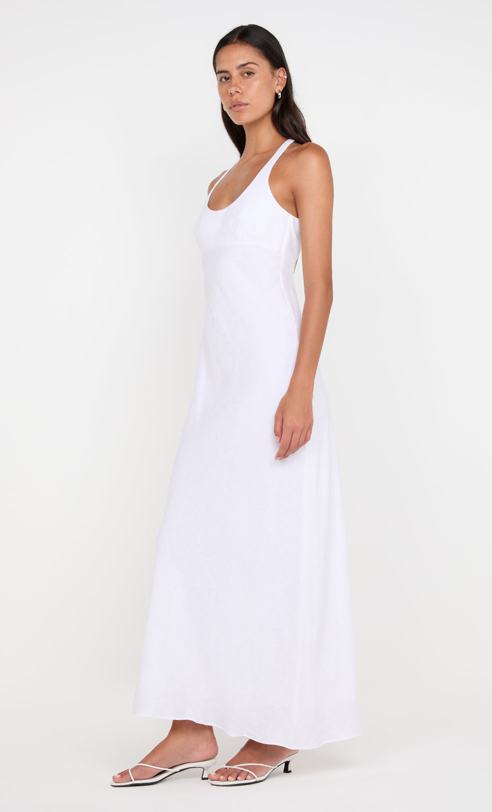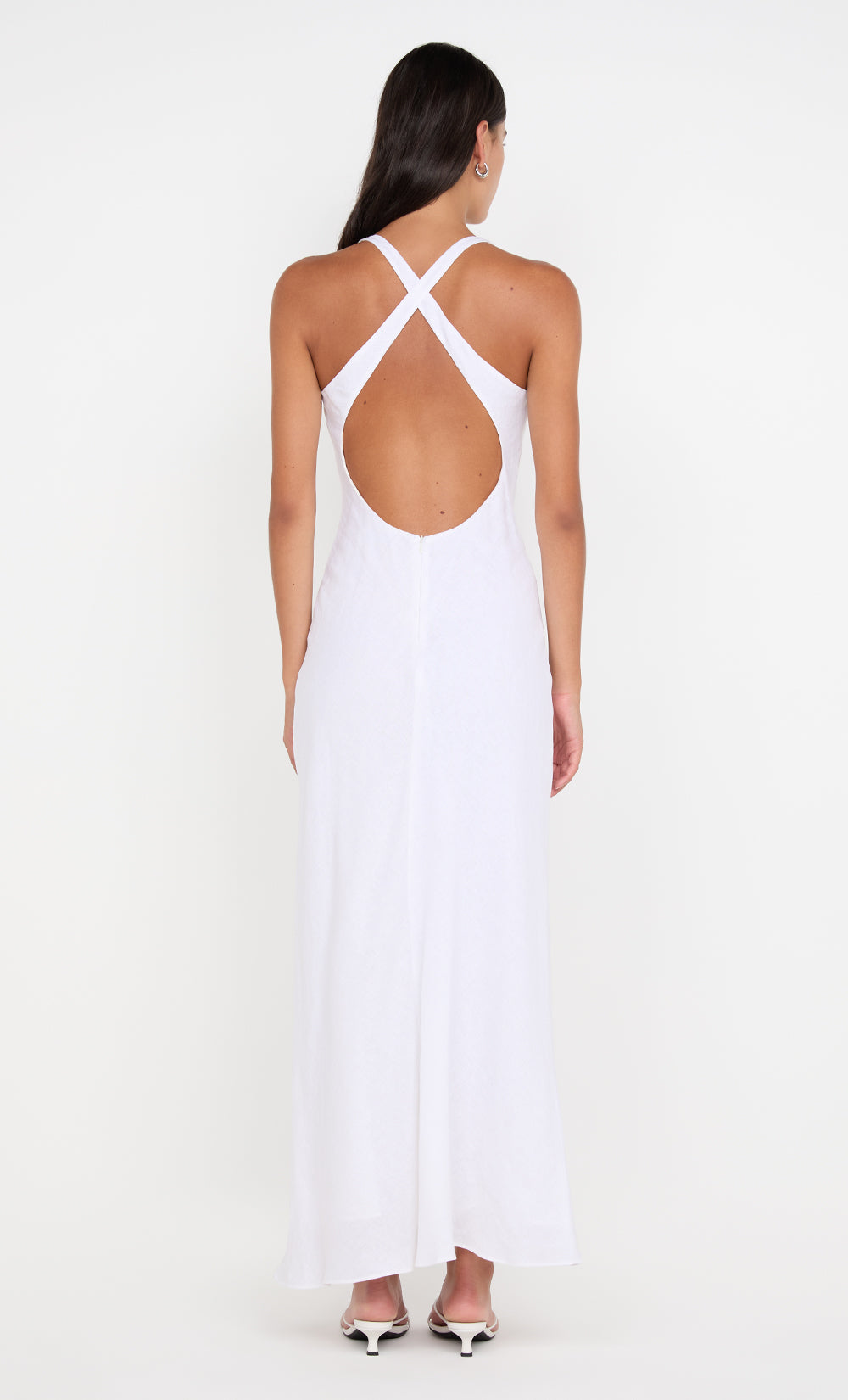 The BEC + BRIDGE Luca Crossover Dress in White is an effortless maxi with a scoop neckline and open-back crossover straps, making it a perfect addition to your summer wardrobe.