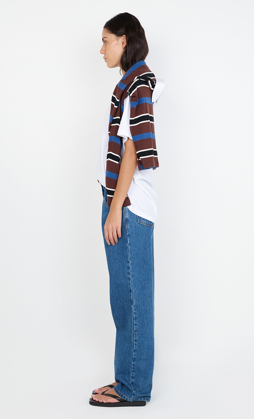 The BEC + BRIDGE Lucian Contrast Jean in Indigo Washed Denim is crafted from a blend of cotton and recycled cotton for a sustainable yet stylish fit. Designed to sit at the mid to high waist, these jeans feature a contrast dark indigo yoke and a straight-leg silhouette for a flattering, classic look. They are accessed via a fly front zipper with a custom BB denim tack and include front pockets, back patch pockets, and a custom BB patch at the back waistband.