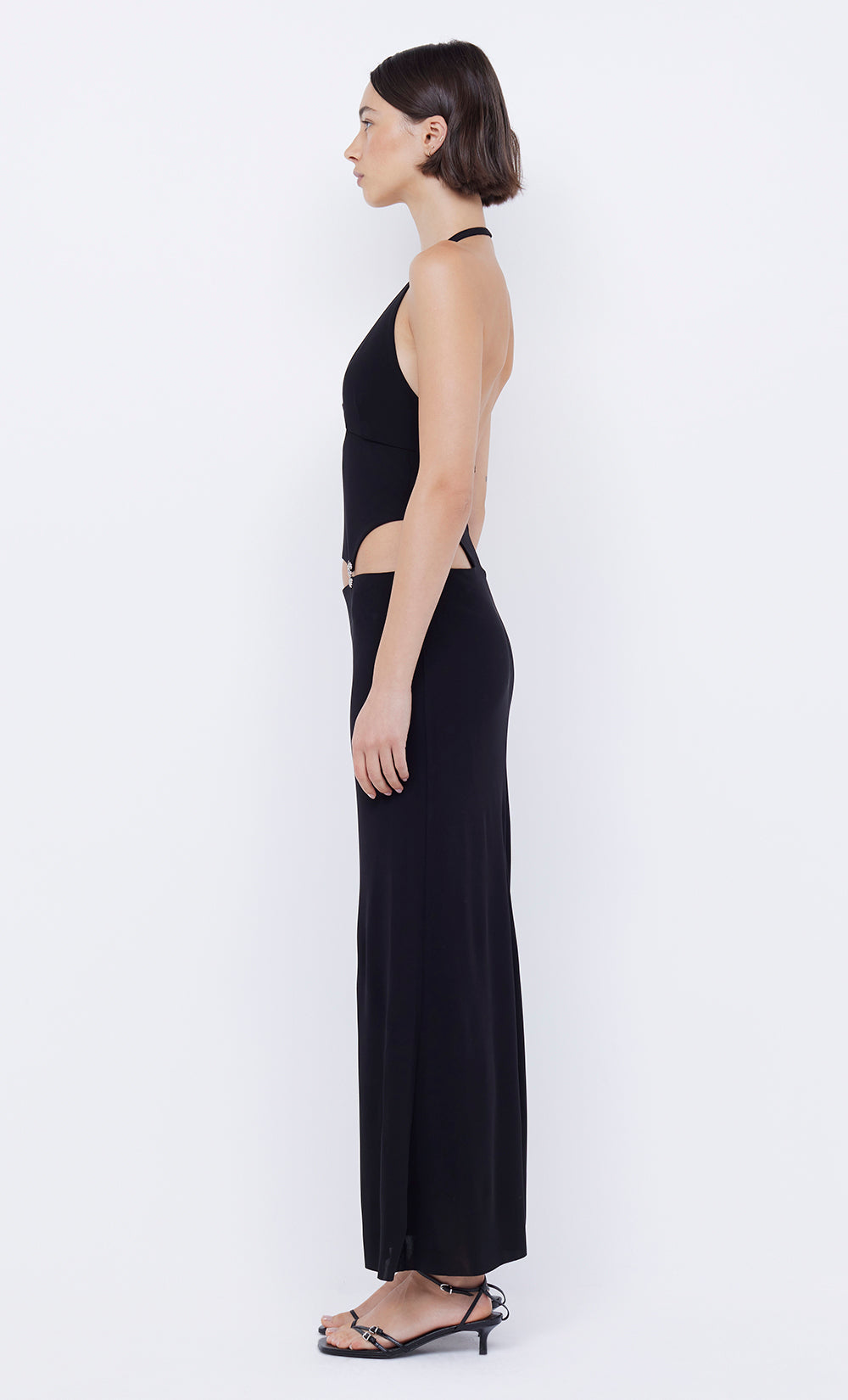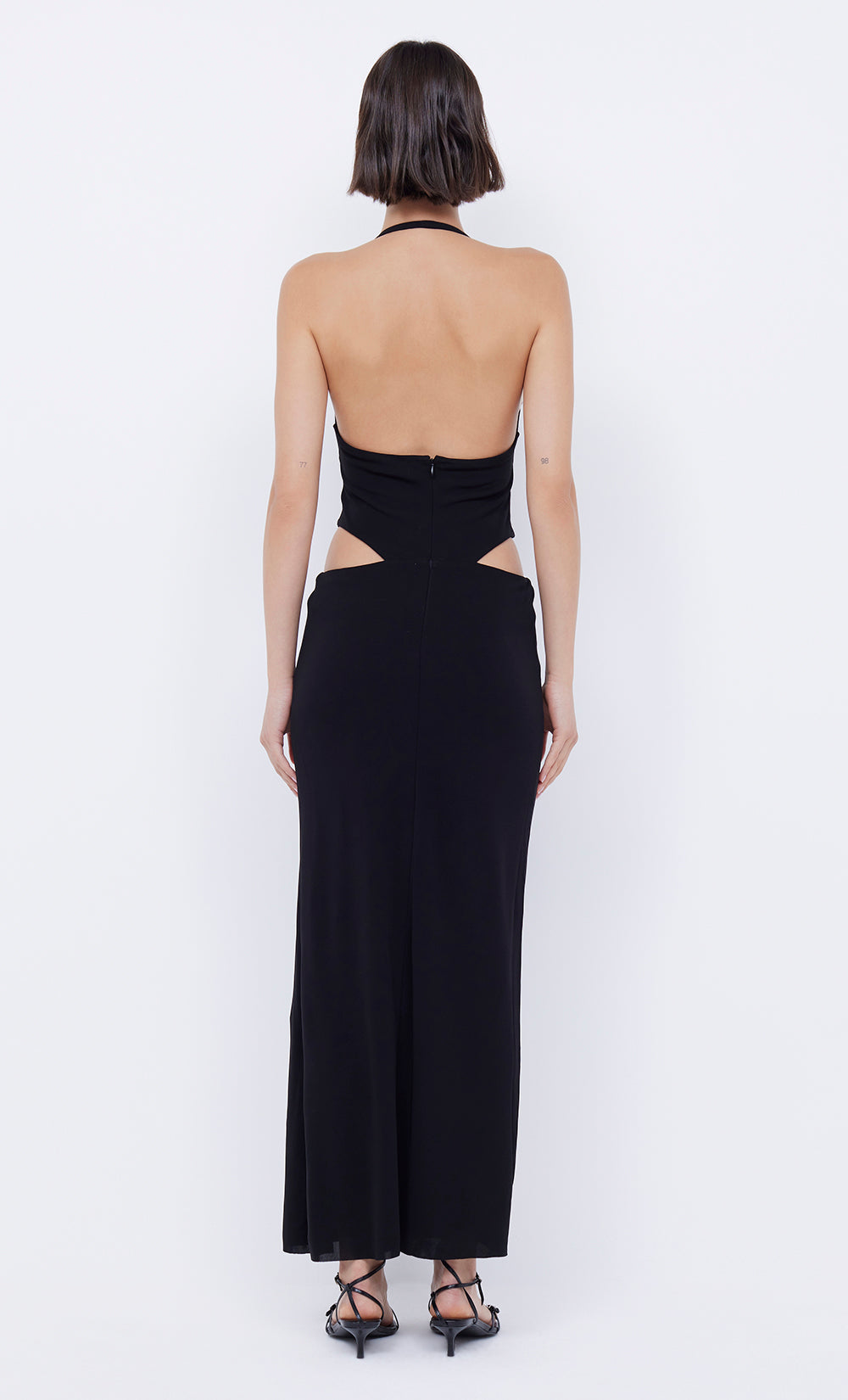 The BEC + BRIDGE Malena Clasp Maxi Dress is a flattering fully lined halter neck maxi dress, that includes an underbust seam and bust darts for security. The dress features stylish key hold cut outs on the bust, the side of the waist, and just under the navel to create an effortless low rise look.