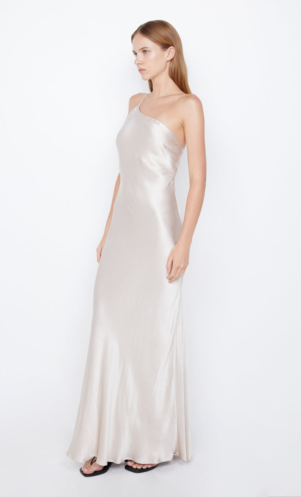 Cut on the bias from a lustrous fabric, the BEC + BRIDGE Margaux Asym Maxi Dress is an effortless event-wear style that skims and flatters the silhouette. The dress features an asymmetrical neckline and statement open back with adjustable strap detailing.