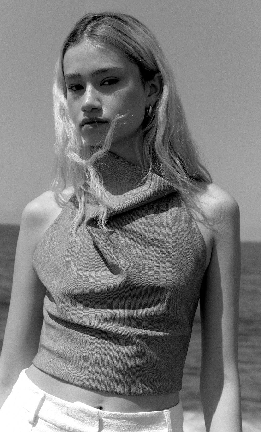 - Halter top with cowl neckline