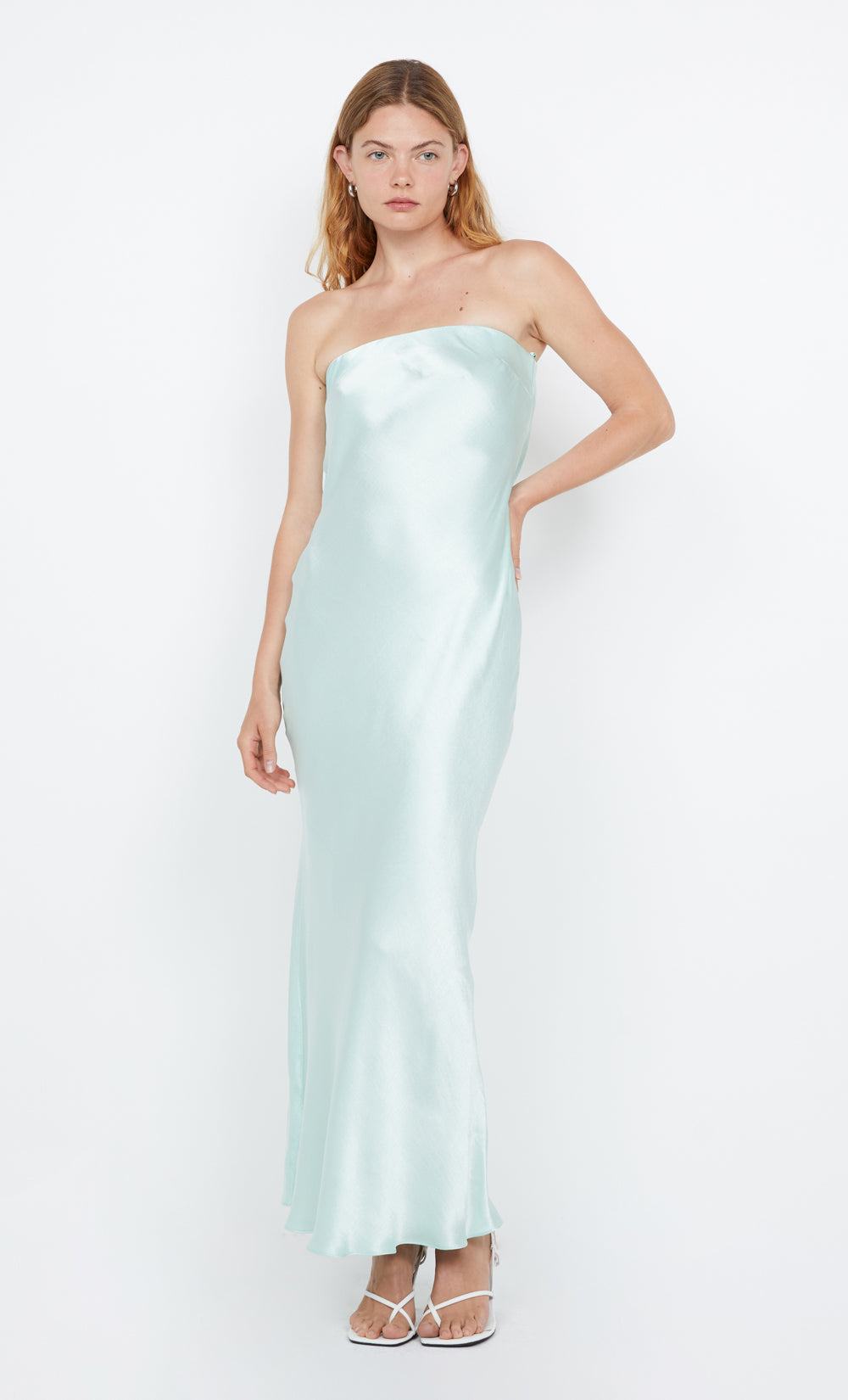 A bestselling silhouette, the Moon Dance Strapless Dress is an easy-to-wear bias-cut design that flatters all body shapes. The maxi dress features a statement low cowl back fastened with a back clip and finished with a rolled hem.