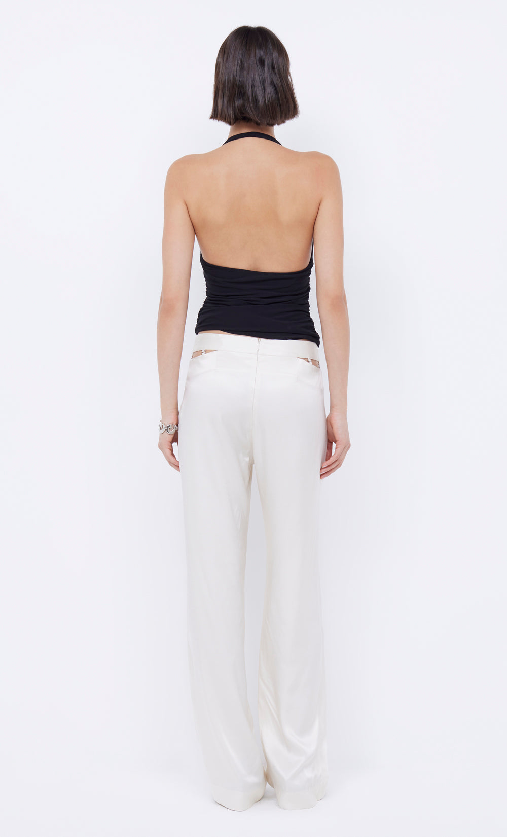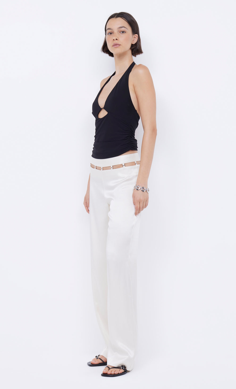 Soft and slinky, the BEC + BRIDGE Nabila Halter Top is a low-cut style with flattering gathering at side seams and a cut out at centre front. The double-lined style is finished with a raw hem. Styled with our Alabama Pant.