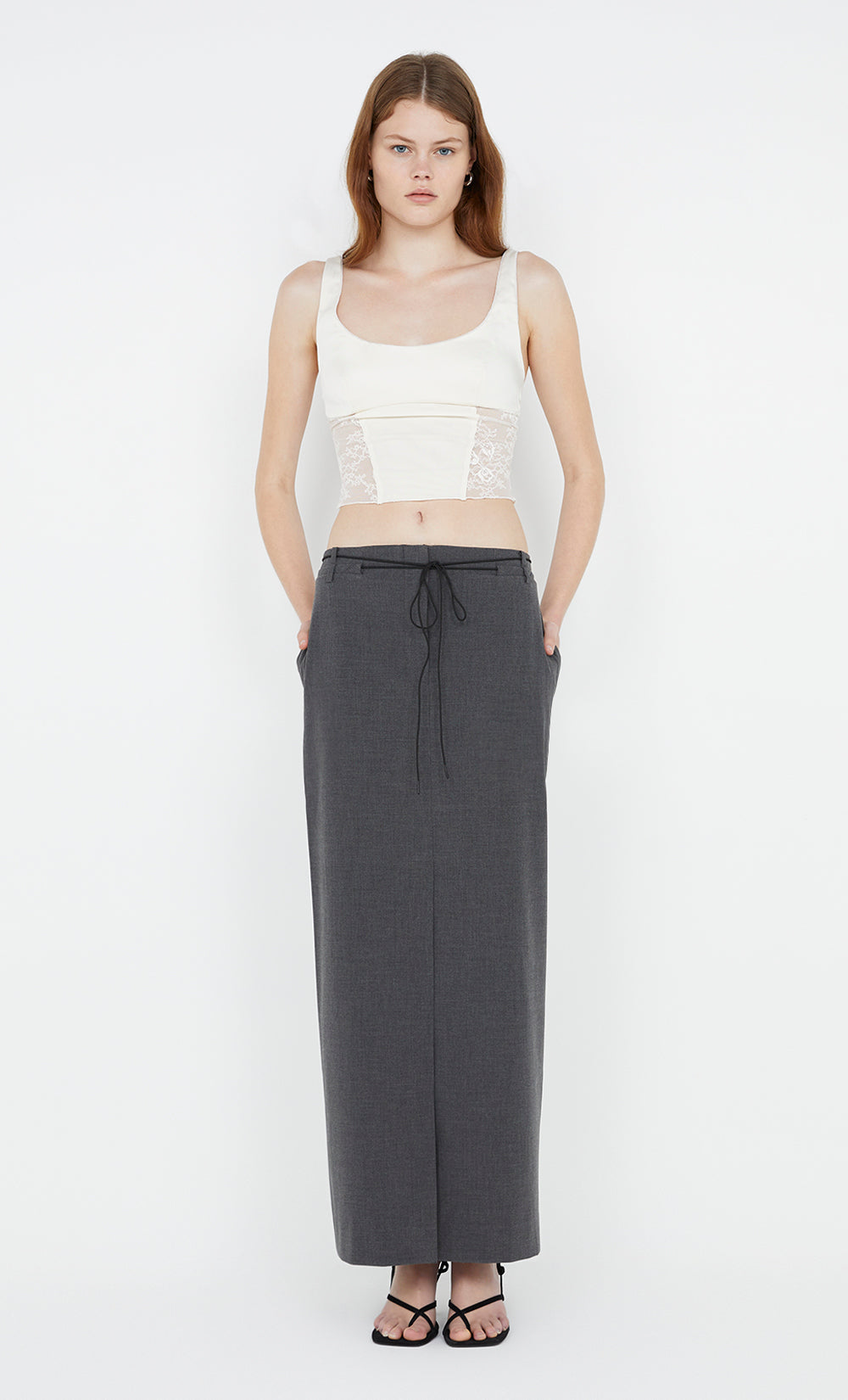 The BEC + BRIDGE Olympia Corset Top combines a timeless silhouette with modern lace detailing. Featuring a classic scoop neckline and wider straps, this top showcases a corset-style fit with seam lines. Stretch lace panels at the side seams and a soft mesh panel at the center front add a contemporary touch.