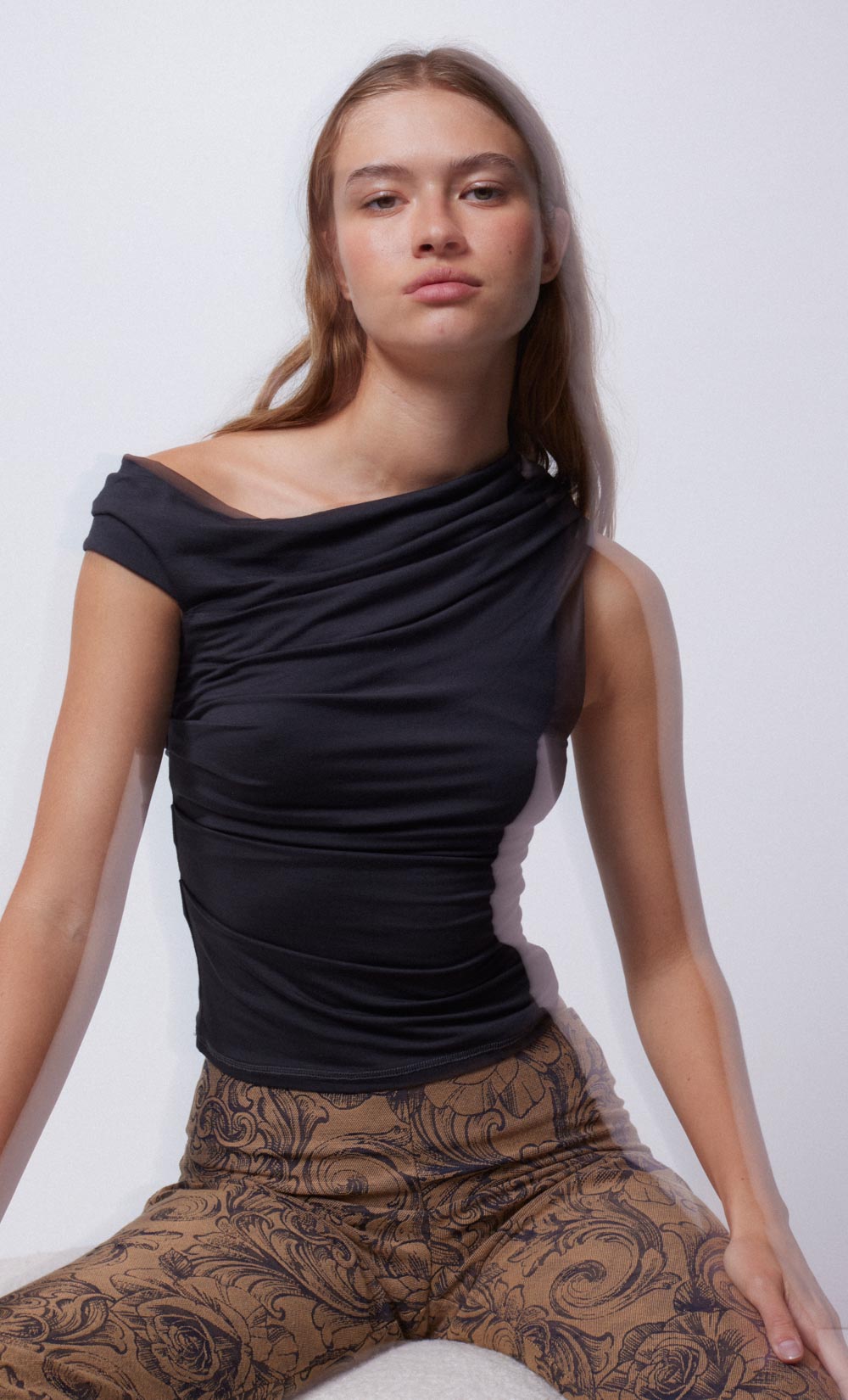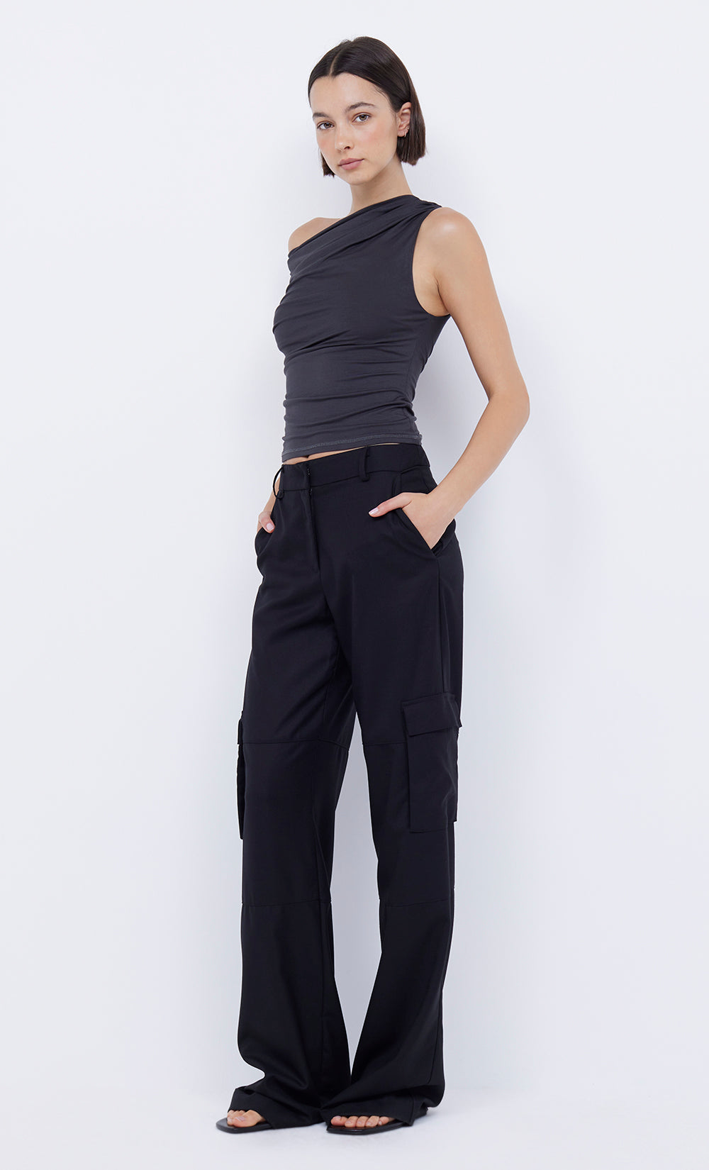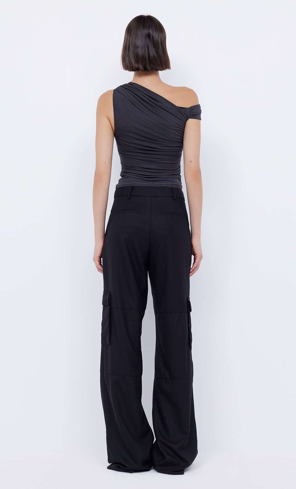 The BEC + BRIDGE Serene Top is a classic with a twist. The easy-to-wear asymmetrical off the shoulder style features ruching throughout for a flattering fit. Styled with the BEC + BRIDGE Nevada Pocket Pant.