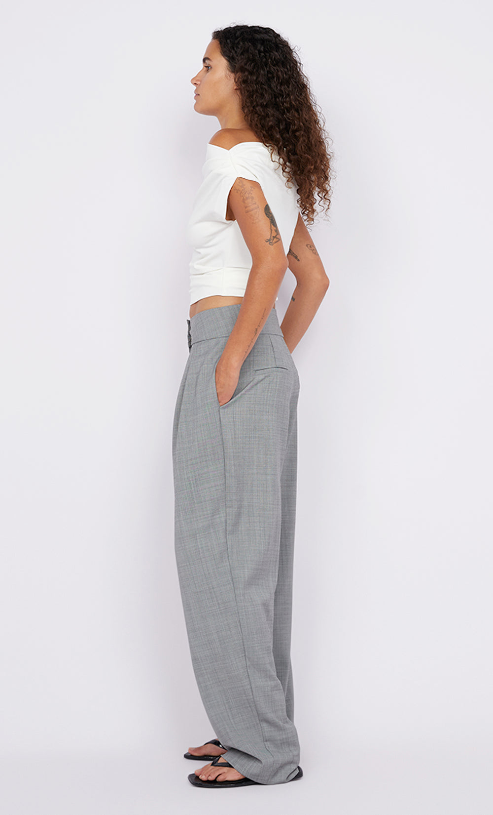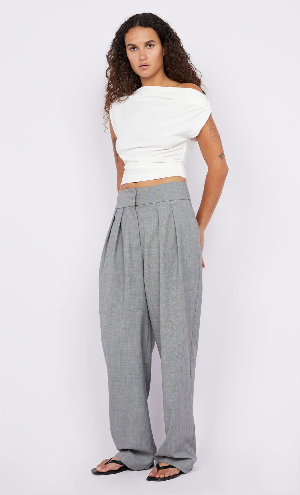 The BEC + BRIDGE Soraya Boat Neck Top in White is a versatile staple featuring tucks at the shoulders and waistline. Designed for multiple styling options, this top can be worn asymmetrically or as is.