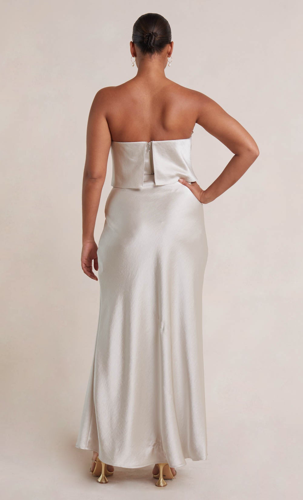 A chic strapless, double layered bodice top. The Dreamer Strapless Top is a cropped length style with a zipper at the centre back for access. Top is styled with our Dreamer Skirt.