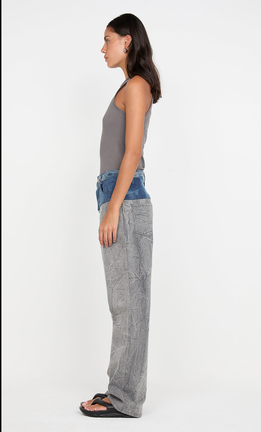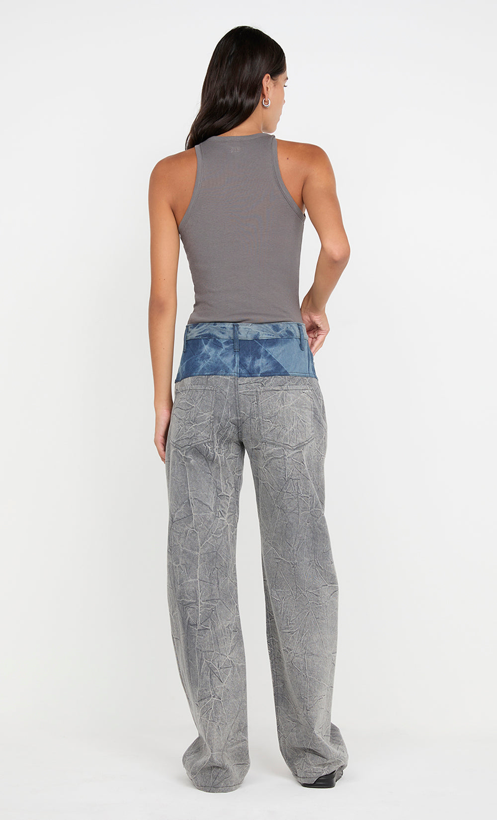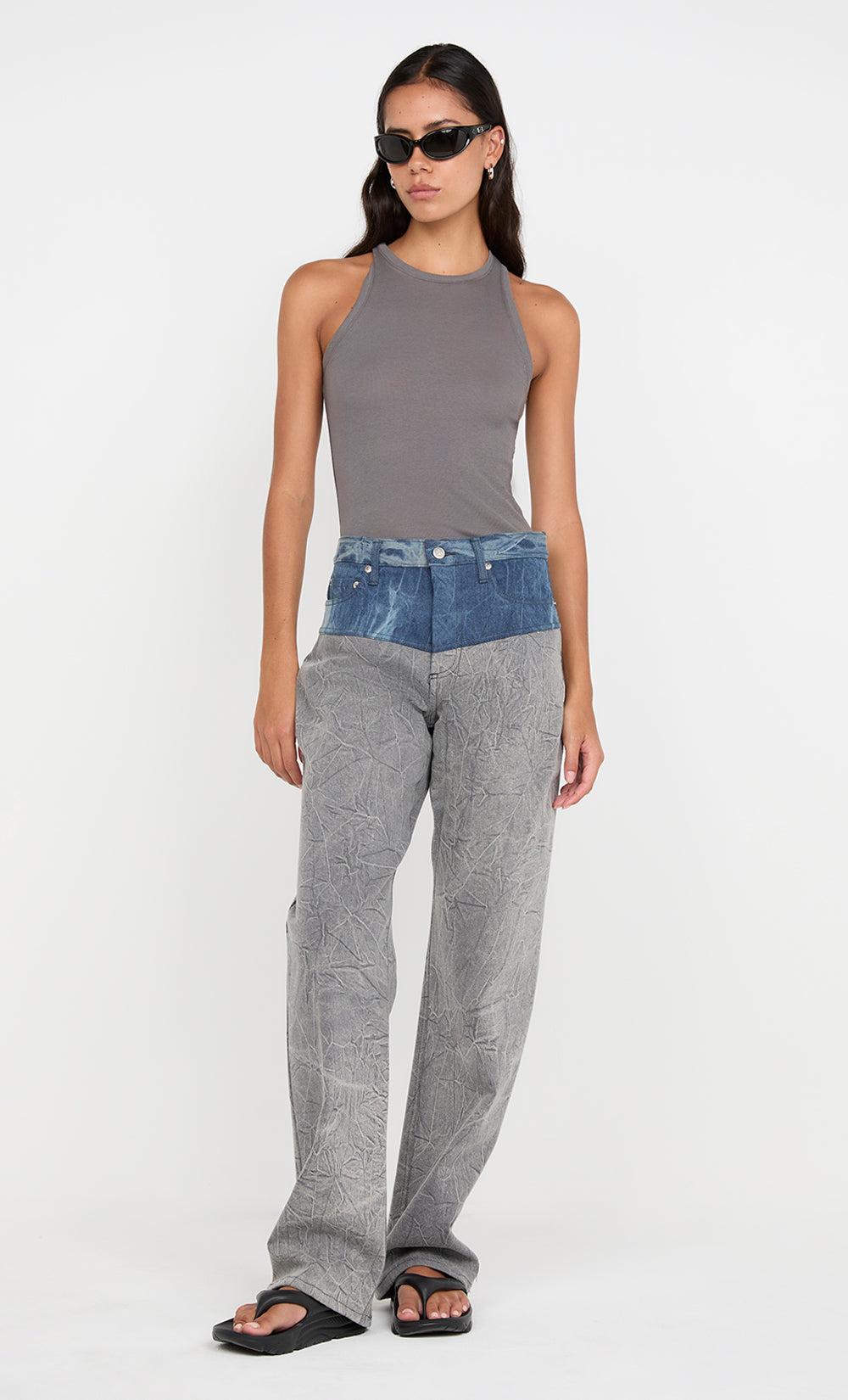 The BEC + BRIDGE Zavier Contrast Jean in Stonewash + Distressed Indigo features a striking mix of stonewash and distressed indigo fabrics. With a relaxed fit and bold detailing, these jeans add a standout touch to any casual outfit.
